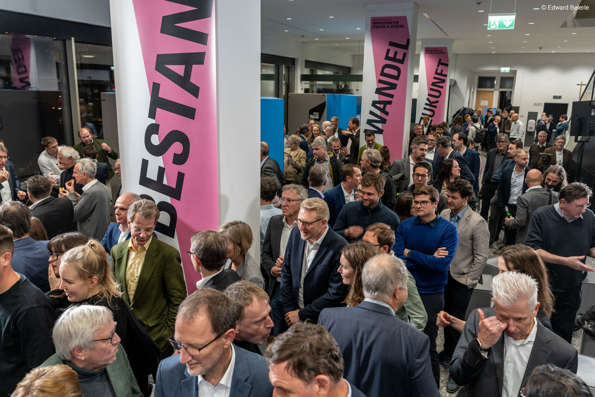 Im Anschluss wurde die Begleitausstellung eröffnet, die zwei Wochen im Foyer des Bau- und Verkehrsministeriums zu sehen ist. Sie zeigt, wie Bayerns Verkehrsinfrastruktur heute dasteht, wie sie sich verändert – und wohin sie sich entwickelt. Der Fokus liegt auf Maßnahmen und Strategien für den Um- und Ausbau der bayerischen Straßen- und Schieneninfrastruktur sowie für deren beständigen Erhalt. Gezeigt werden konkrete Beispiele für die mögliche Fortentwicklung. Hierbei wird ein besonderer Schwerpunkt auf Fragen der Resilienz und Nachhaltigkeit sowie moderne Mobilitätsanforderungen in Stadt und Land gelegt.