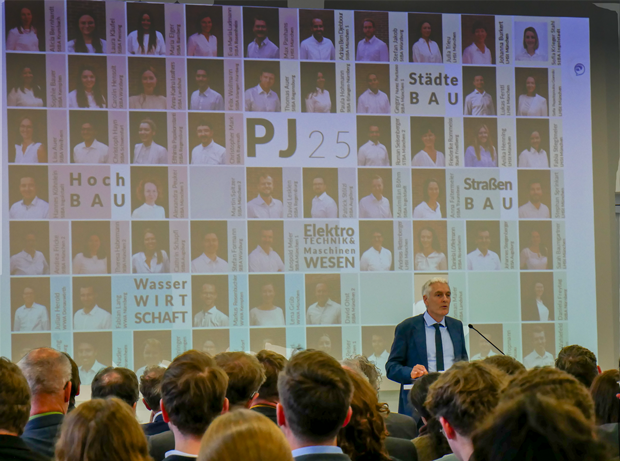 Nach den Grußworten von Ministerialrat Constantin Sadgorski vom Bayerischen Staatsministerium für Umwelt und Verbraucherschutz sowie Baudirektor Markus Groß von der Landeshauptstadt München hielten die beiden Jahrgangssprecher Paula Hohmann und Maximilian Böhm eine Dankesrede.
